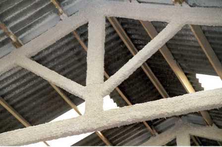 Resulta una protección contra el fuego ligera, eficaz y rentable en estructuras metálicas (vigas, pilares y cerchas) y forjados (con chapa colaborante, bovedillas, etc.).